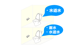 雨水は途中のフィルターを通ってゴミと分離されてタンクへと集水されますが、屋根からの細かいゴミなどはタンクへ入ってしまいます。そうしたゴミがタンク内から雨水を電動ポンプで取水する際に、ポンプに不具合を起こす可能性も非常に少ないですが考えられます。万一の場合に備えて「雨水利用+水道水」、「水道水のみ」といったようにわけて、全てのトイレに雨水利用を導入をすることは避けてください。